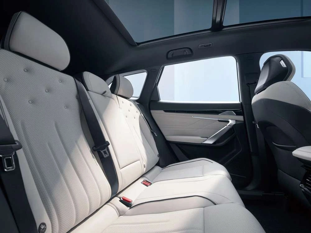 • Отделка интерьера и сидений тёмно-синей экокожей со светло-серыми вставками